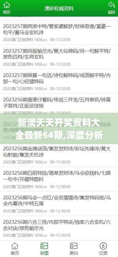 在彩票市场上,新澳天天开奖是一个受到广泛关注的彩票类别。这个彩票的特点是频率高,奖品丰富,深受广大彩票爱好者的喜爱和追捧。今天,我们将提供最新一期新澳天天开奖的资料和信息,这是第54期的深度分析和解释。旨在帮助彩票爱好者更好地理解这个彩票,并提高中奖的可能性。