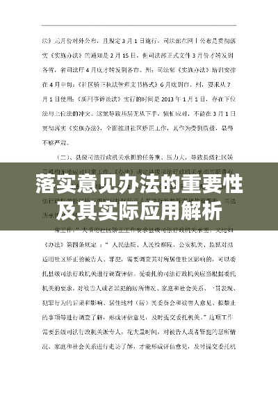 在当今社会,政策的制定只是第一步,真正的挑战在于如何有效地落实这些政策。“落实意见办法”成为了关键词,它关乎政策、规划、方案能否真正落地,发挥其应有的效果,本文旨在探讨落实意见办法的重要性,分析其内涵,并探讨如何在实际工作中加以应用。