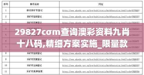 查询澳彩资料九肖十八码时,需要通过特定的查询平台或数据库进行。查询过程需要输入特定的代码,即29827cσm,来定位和检索相关的资料。这一过程需要一定的技术操作和对博彩规则的深入了解,以确保查询结果的准确性和有用性。