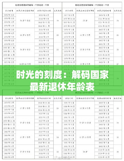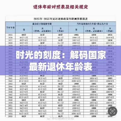 在时间的长河中,每个人的一生都如同一段旅程,而退休则是这段旅程中的一个重要节点。随着社会的发展和人口老龄化的加剧,退休年龄的调整成为各国政府关注的焦点。近日,国家发布了最新的退休年龄表,这一变化不仅影响着每个人的职业生涯规划,更深刻地映射出社会结构与政策导向的变迁。